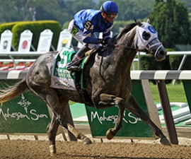 Settled in midfield by jockey Christian Reith, Le Romain moved up to challenge three wide around the turn for home, keeping Press Statement boxed in to his inside.