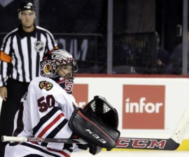 The rookie 21-year-old focused in on his goal during the game against the Ottawa Senators in the form of forward Max McCormick, as the two went at it near the net during the third period.
