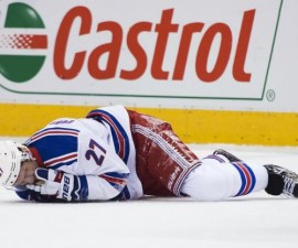 PHILADELPHIA – The Rangers were livid that captain Ryan McDonagh had to leave Saturday afternoon’s game against the Flyers with a likely head injury after being sucker-punched by Philadelphia right wing Wayne Simmonds, who was then ejected.