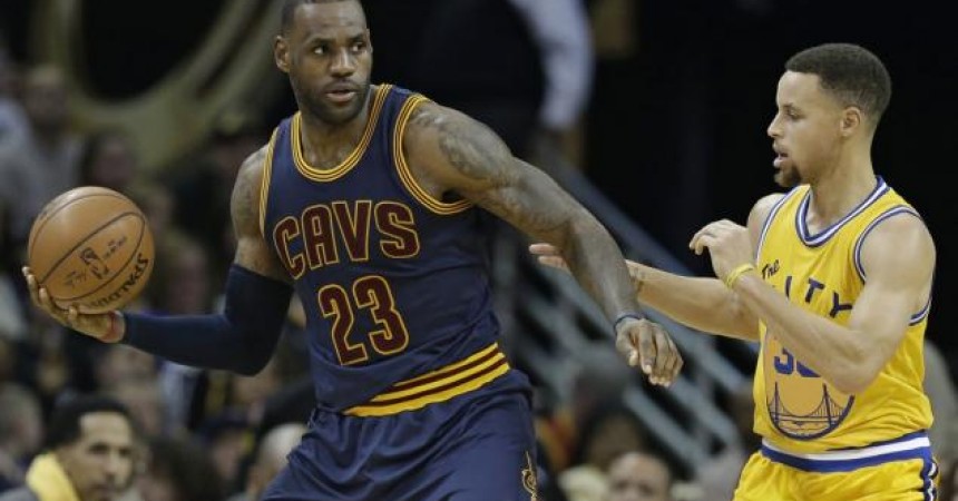 On Cleveland’s next possession, James was backing down in the lane when Curry came up from behind, stripped the ball and went the length of the floor for an easy layup to make it 57-32.