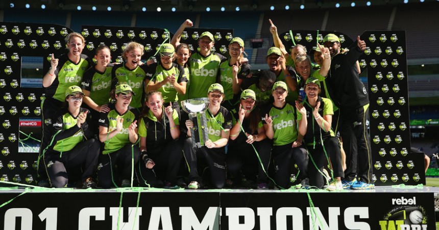 Sydney Thunder beat their crosstown rivals Sydney Sixers by three wickets to win the inaugural WBBL title, in a tense and scrappy game which came down to the last over.