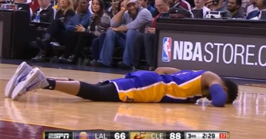 Adding insult to what is hopefully not an injury, the Cavs beat the Lakers 120-111. In his final matchup against LeBron James in Cleveland, Kobe Bryant had 17 points on 5 of 16 shooting. Lou Williams led the Lakers with 28 points. Russell had 15 points and three assists.