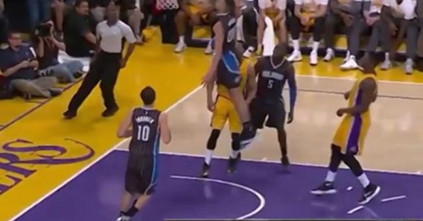 After bursting onto the scene with his leap over the Magic mascot in February, Gordon has arguably stolen the spotlight from Zach LaVine by continuing to show off his bounce. In a loss to the lowly Lakers Tuesday night, Gordon windmill dunked from just inside the free throw line and all purple and gold players moved out of his way to watch in awe.