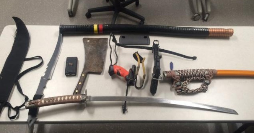 The Foxborough Police Department reports several weapons seized in the Gillette Stadium employee parking lot, including a katana, a sword, a crossbow and a rusted cleaver.